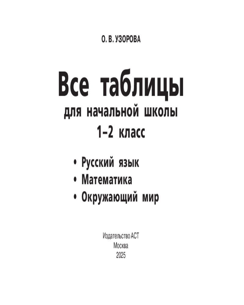💳 Оплатить за товар можно при получении 🇰🇿 Есть бесплатная доставка по Казахстану от 1 дня 🎁 Копите бонусы с каждой покупки Серия: Таблицы для начальной школы: методика О. Узоровой «Все таблицы для начальной школы. 1–2 класс. Русский язык, математика, окружающий мир» — это пособие для школьников, основанное на учебной методике известного педагога-практика О. В. Узоровой. На страницах книги — весь курс занятий за 1–2 классы по основным предметам начальной школы: русскому языку, математике и окружающему миру. Учебный материал организован по принципу «от простого к сложному» и представлен в виде наглядных схем и таблиц. Занимаясь по книге, ученики без лишних усилий освоят все трудные темы школьной программы и успешно подготовятся к контрольным и проверочным работам. Для начального образования. |