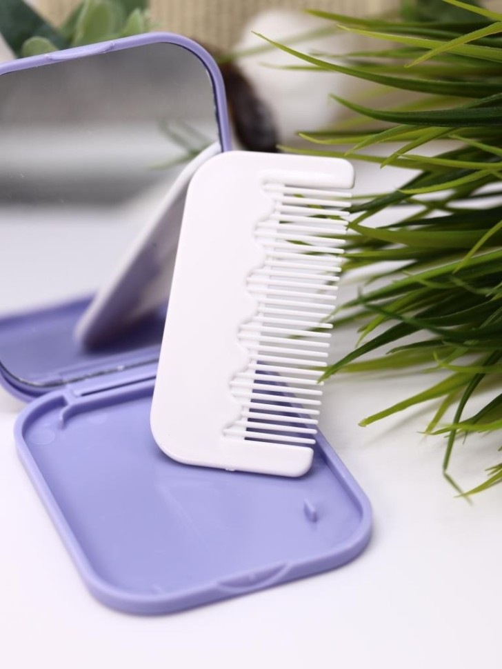 удобный формат - зеркальце с расчёской в плоском компактном исполнении. вмещается даже в кошелек. удобно в дорогу ,в горы, в школу ребенку, или просто ежедневно в сумку, много места не занимает