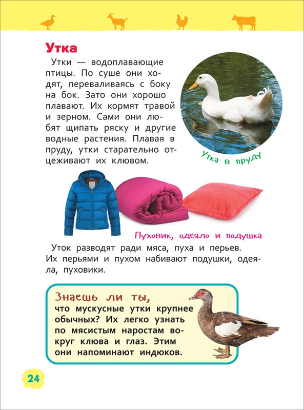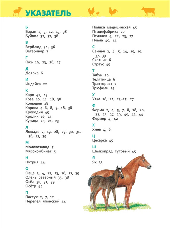 💳 Оплатить за товар можно при получении 🇰🇿 Есть бесплатная доставка по Казахстану от 1 дня 🎁 Копите бонусы с каждой покупки Книга серии «Энциклопедия для детского сада» расскажет детям о животных, которые вот уже тысячи лет живут рядом с человеком, обеспечивают его питанием, одеждой и многими необходимыми для хозяйства вещам, помогают обрабатывать землю и переводить грузы. Дошкольники узнают, каких животных содержат на ферме и как за ними ухаживают, и получит ответы на множество интересных вопросов. Кто перевозит грузы в горах, а кто — на Крайнем Севере? Какие насекомые относятся к домашним животным? Как на фермах выращивают страусов и крокодилов? Как яки помогают отапливать жилища? Информация о разнообразных домашних животных закрепится выполнением интерактивных заданий. |