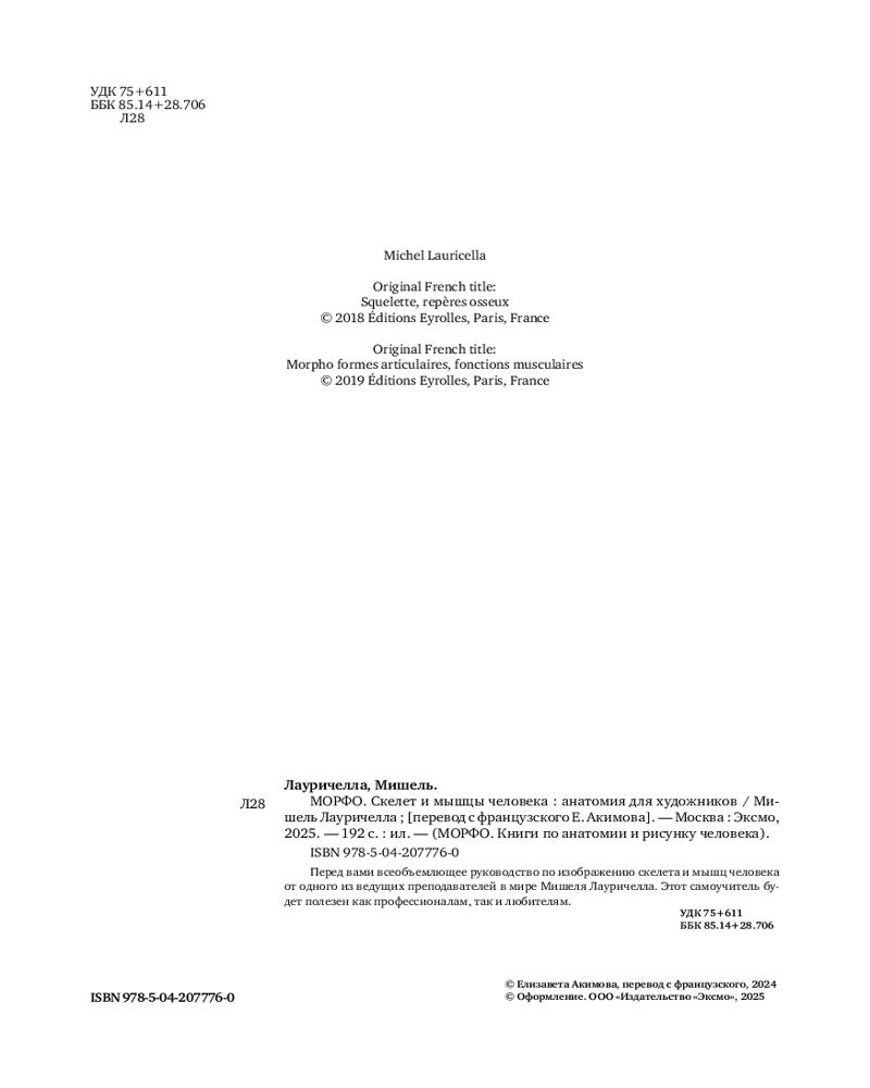 💳 Оплатить за товар можно при получении 🇰🇿 Есть бесплатная доставка по Казахстану от 1 дня 🎁 Копите бонусы с каждой покупки Серия: МОРФО. Книги по анатомии и рисунку человека Новая часть известного французского бестселлера «Морфо» по анатомии! Если первая часть была полностью посвящена методу экорше, то в своей новой книге известный художник Мишель Лауричелла подробно разбирает строение скелета и мышц человека. Вместе с ним вы сможете буквально по косточкам разобрать человеческое тело: понять, как крепятся друг к другу разные кости, как работают суставы, как устроены мышцы и как они крепятся. Благодаря этому пособию вы сможете не только понять основы работы с рисунком человека, но и поднять уже имеющиеся навыки на новый уровень. «Морфо. Скелет и мышцы человека» — прекрасное подарочное издание, которое станет отличным дополнением полки как начинающих художников и студентов, так и профессионалов. |