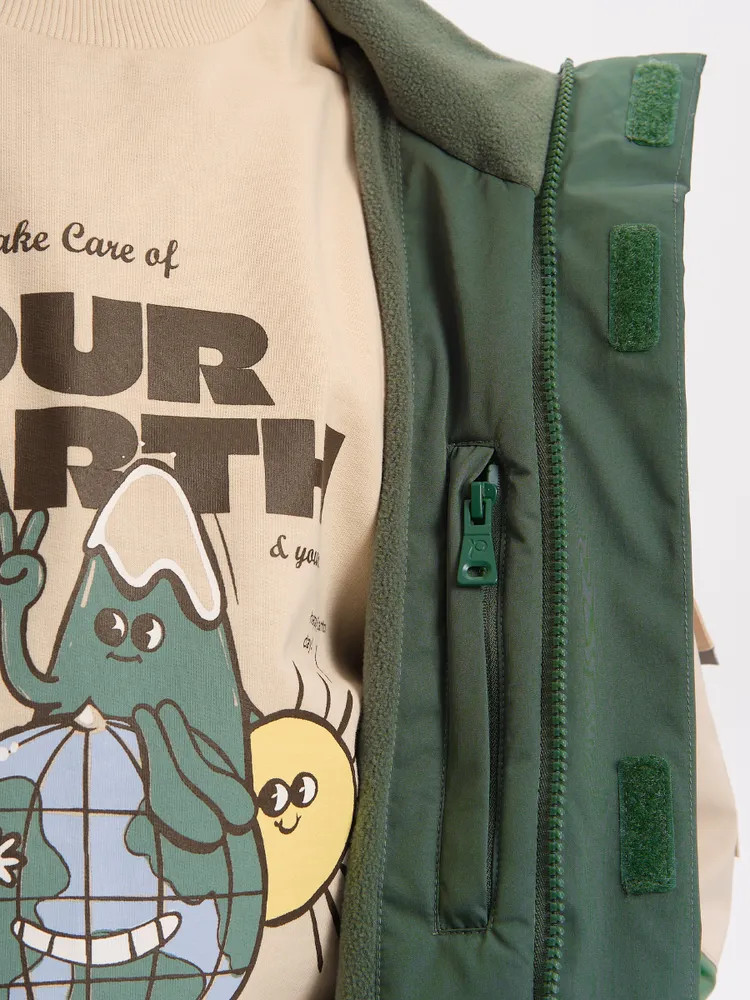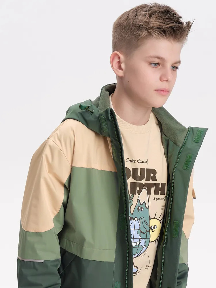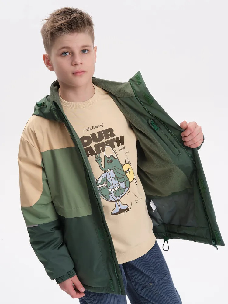 Укороченная ветровка для мальчика на флисовом подкладе идеально подходит для весны и осени. Стильный прямой силуэт с спущенным плечом обеспечивает свободу движений.