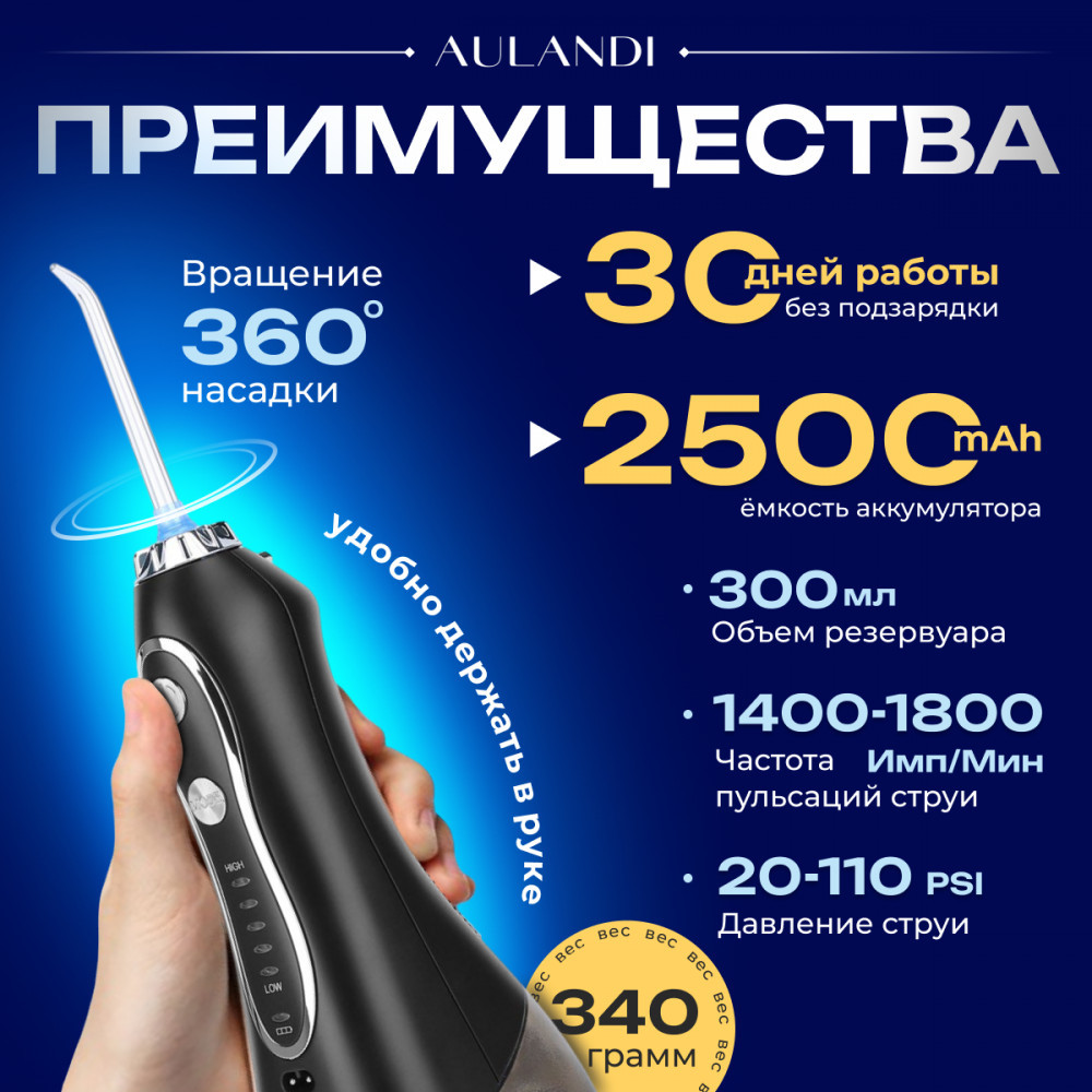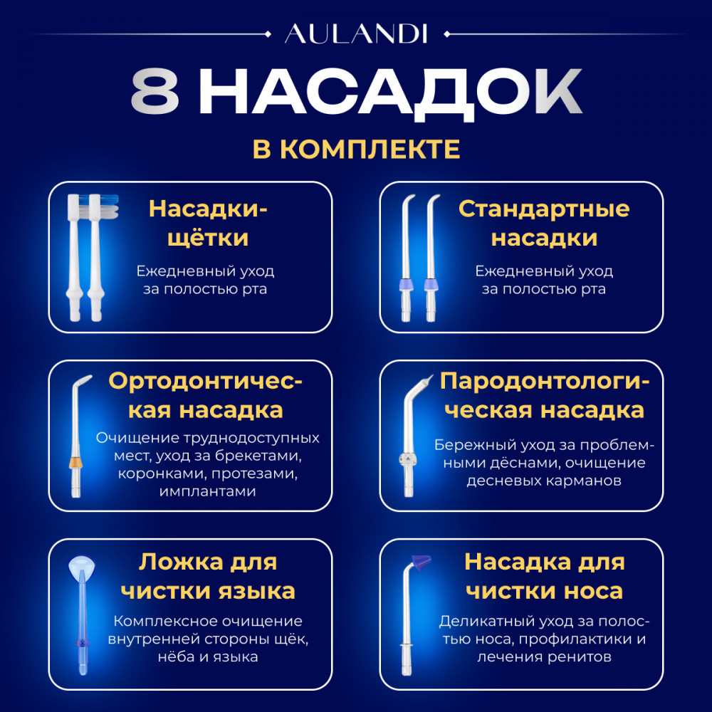 • Aulandi HF-6 — это не просто прибор для чистки зубов. Это инвестиция в ваше здоровье, красоту и уверенность в себе. Ощутите разницу с профессиональным уходом за полостью рта прямо дома.