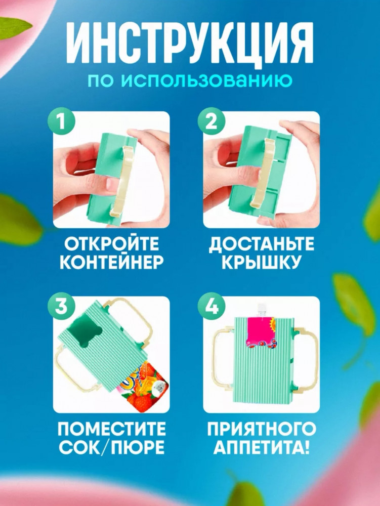 Чехол для пакетированного детского пюре — это инновационный аксессуар, который станет незаменимым помощником для заботливых родителей. Контейнер разработан специально для удобства малышей во время еды, он обеспечивает защиту от выдавливания и загрязнения, помогая поддерживать чистоту одежды и окружающих поверхностей, благодаря своей конструкции, которая надежно фиксирует пакет с пюре или соком. Герметичное закрытие обеспечивает надежную защиту от пролива.