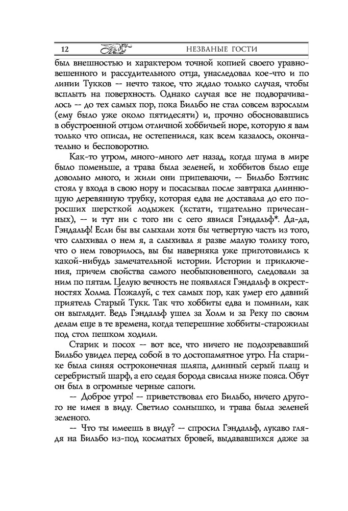 Вот в этом переводе я наконец-то увидел у двух героев книги - хоббита Бильбо фамилию "Бэггинс" и у мага его имя - Гэндальф. Интересно как в этом переводе называется камень короля гномов? Настоящее название "Аркинстон", а во многих переводах он пишется "Завет-Камень". И как называется дракон - "Смог" или "Смауг"? И как пишется здесь имя короля эльфов - "Элронд" или "Эльронд"? Правильно пишутся "Смауг" и "Эльронд". Но в любом случае перевод оценку "четыре" заслужил. Оценку "пять" поставлю после прочтения книги.