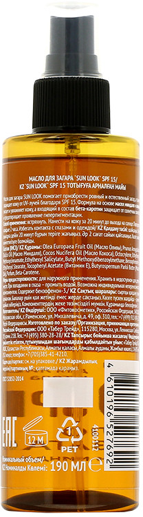 Sun Look Масло для загара с маслом миндаля SPF 15В данный момент этот товар отсутствует в продаже. Возможно, у нас найдется аналогичный или похожий товар здесь. Масло для загара Sun Look помогает приобрести ровный и естественный загар, а также защищает кожу от UV- лучей благодаря SPF 15. Формула на основе масел миндаля и оливы питают и увлажняют кожу, а входящий в состав бета-каротин защищает от солнечных ожогов и предотвращает проявление гиперпигментации. |