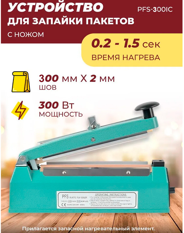 Запайщик пакетов с отрезным ножом PFS-300I+240