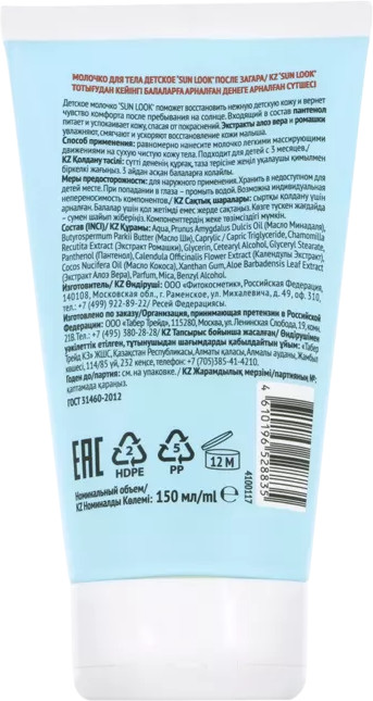 Sun Look Молочко для тела детское после загараВ данный момент этот товар отсутствует в продаже. Возможно, у нас найдется аналогичный или похожий товар здесь. Детское молочко поможет восстановить нежную кожу малышей и вернет чувство комфорта после пребывания на солнце. Входящий в состав пантенол питает и успокаивает кожу, спасая от покраснений и ожогов. Экстракты алоэ вера и ромашки увлажняют, смягчают и ускоряют восстановление кожи малыша. |