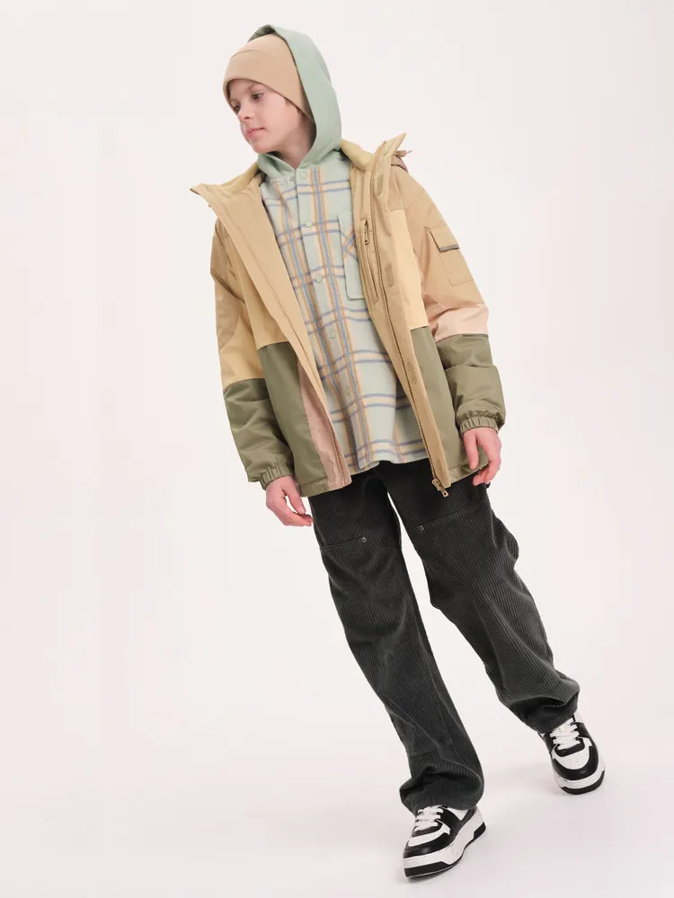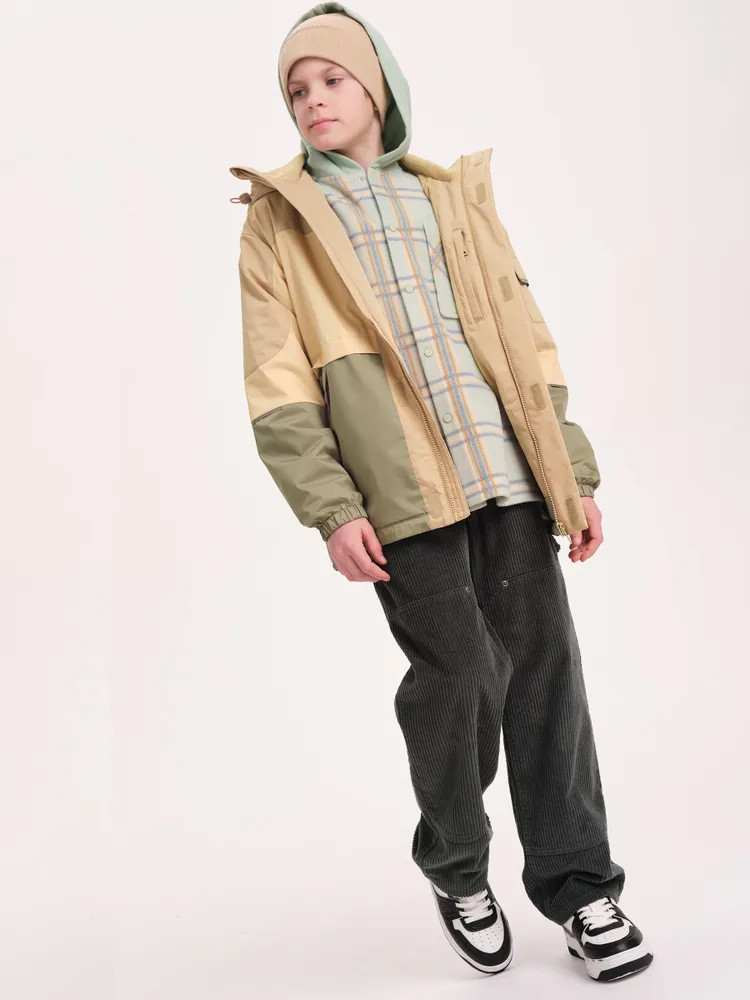 Укороченная ветровка для мальчика на флисовом подкладе идеально подходит для весны и осени. Стильный прямой силуэт с спущенным плечом обеспечивает свободу движений.