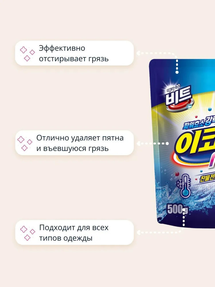 Способ применения: соблюдайте условия стирки, указанные на ярлыке одежды. Цветные вещи стирайте отдельно от белого белья.