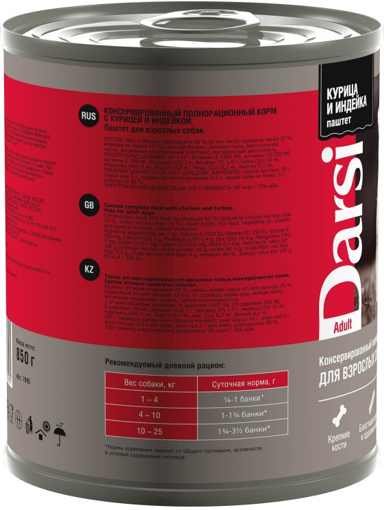 Darsi Комплект консерв для взрослых собак «Паштет курица и индейка»