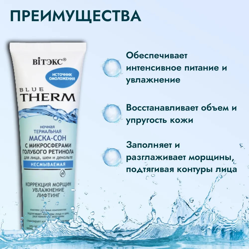 Вiтэкс Набор масок для лица, шеи и декольте ночных с микросферами голубого ретинола