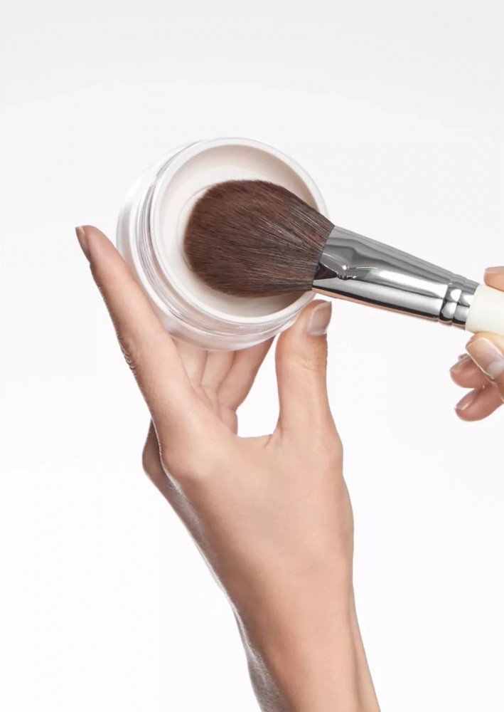 Фиксирующая рассыпчатая пудра представлена в удобной упаковке, оснащенной ограничителем в виде тонкой сетки, которая дозированно выдает нужное количество продукта без рассыпания. В комплект входит мягкий спонж для комфортного и равномерного нанесения фиксирующей рассыпчатой пудры. Для более тонкого и воздушного эффекта — используйте кисть.