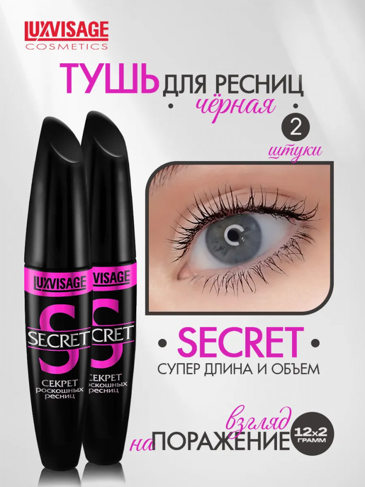 LuxVisage Набор туши для ресниц «Секрет роскошных ресниц», оттенок Чёрный
