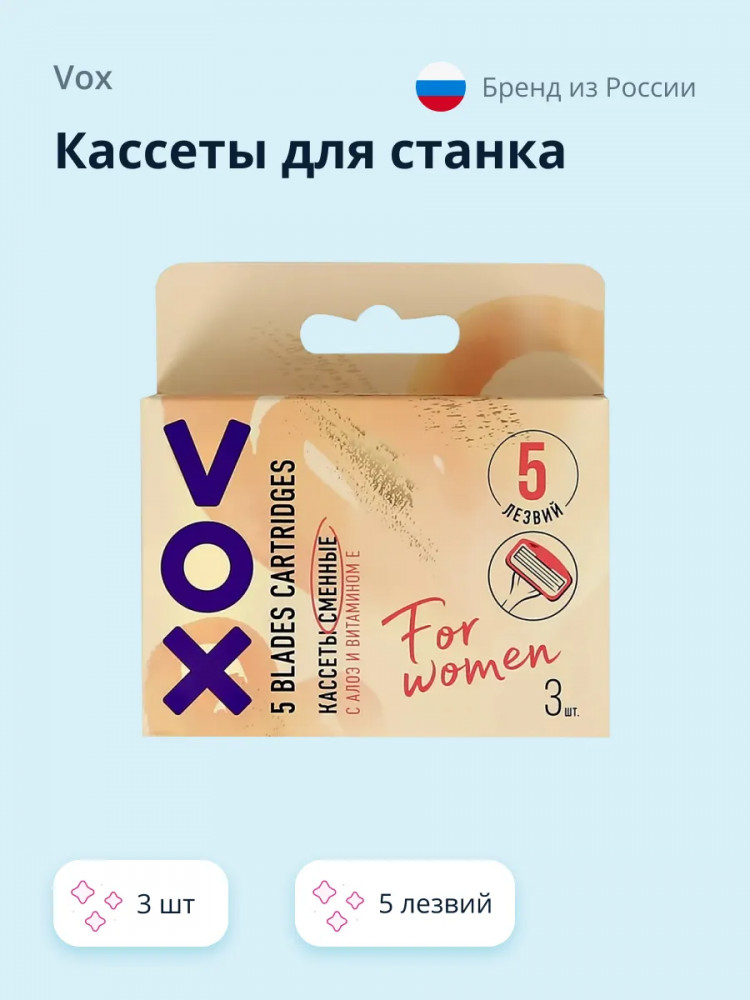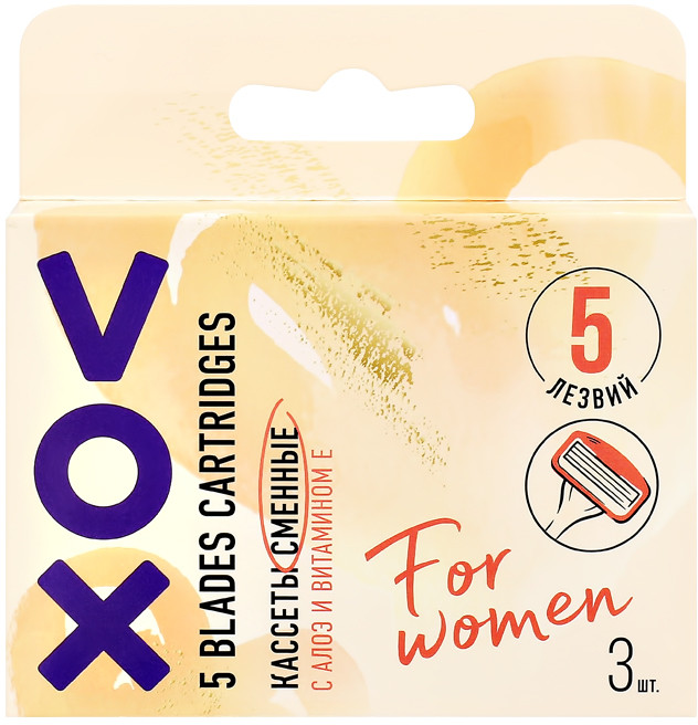 VOX Набор кассет сменных для бритвенного станка с алоэ и витамином ЕВ данный момент этот товар отсутствует в продаже. Возможно, у нас найдется аналогичный или похожий товар здесь. Серия: For Women Сменные кассеты Vox c 5 лезвиями — это идеальный вариант для нежной и чувствительной кожи. Супертонкие лезвия гарантируют полное сбривание нежелательных волосков. Увлажняющая полоска с экстрактом алоэ вера и витамином Е обеспечивает увлажнение и помогает защитить кожу во время бритья. Упаковка содержит 3 кассеты. |