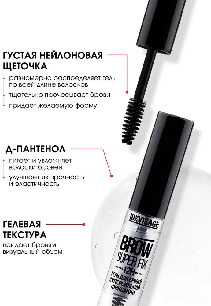 LuxVisage Набор гелей для бровей суперсильной фиксации «Brow Super Fix 12H»В данный момент этот товар отсутствует в продаже. Возможно, у нас найдется аналогичный или похожий товар здесь. Гель укладывает волоски бровей в нужном направлении и фиксирует даже самые густые, жесткие и непослушные брови на 12 часов. Прозрачная текстура обволакивает волоски тончайшей невидимой пленкой, придавая бровям визуальный объем. |
