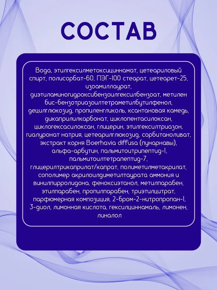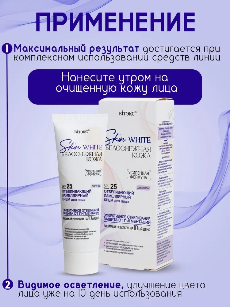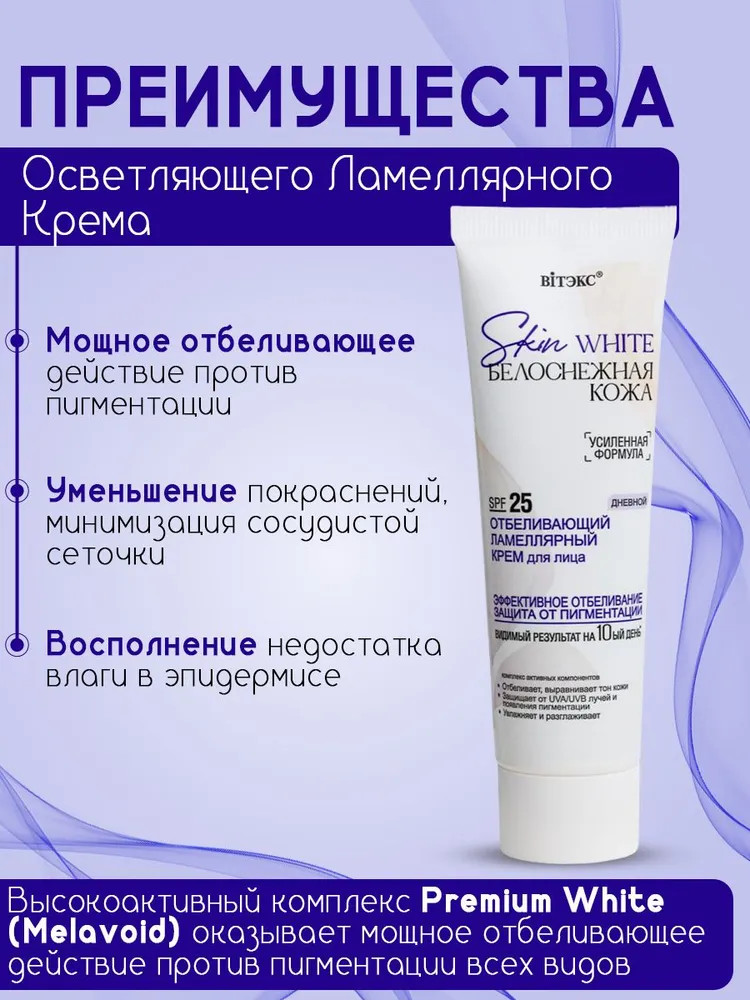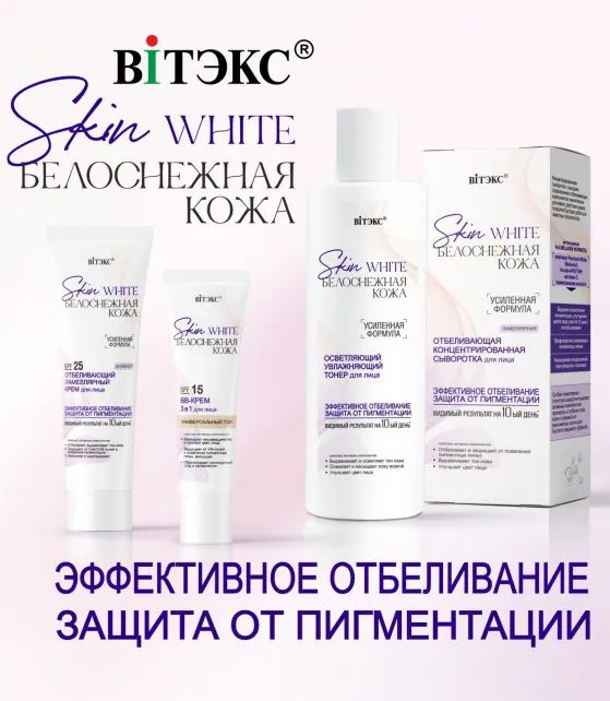 💳 Оплатить за товар можно при получении 🇰🇿 Есть бесплатная доставка по Казахстану от 1 дня 🎁 Копите бонусы с каждой покупки Серия: Skin White. Белоснежная кожа Мощное отбеливающее действие против пигментации различного происхождения, веснушек и пятен постакне Предупреждение пигментации, в том числе появляющейся с возрастом и в послеродовой период Уменьшение покраснений, минимизация сосудистой сеточки и проявлений купероза, выравнивание тона кожи, свежий и ухоженный цвет лица Полноценный уход и увлажнение: восполнение недостатка влаги в эпидермисе, разглаживание микрорельефа кожи, замедление процессов старения, предупреждение появления морщин, повышение тонуса и упругости. |