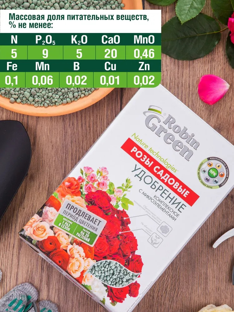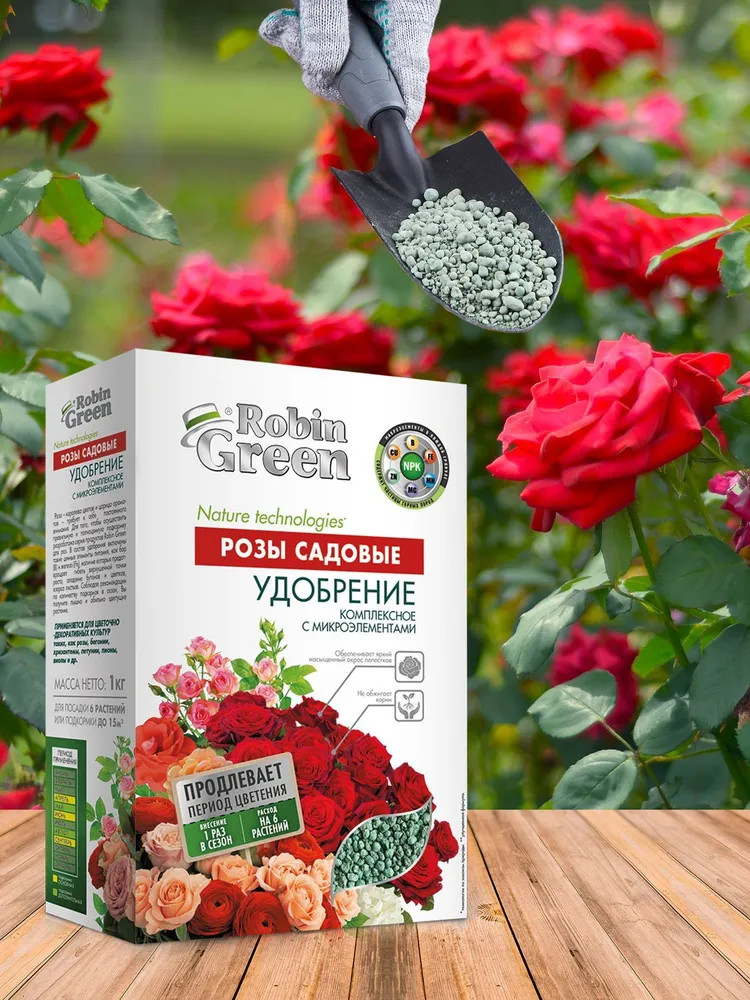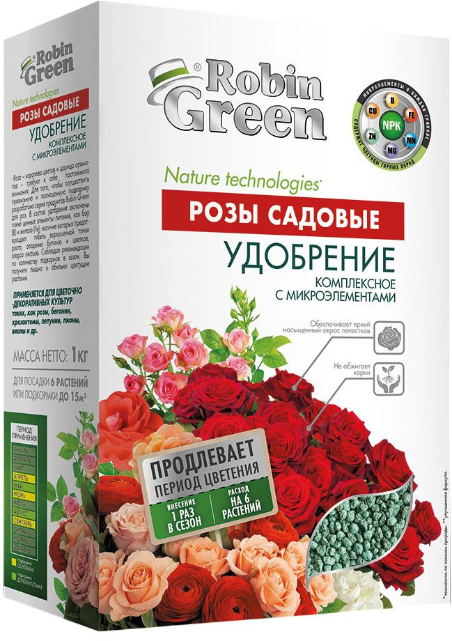 Robin Green Удобрение «Для садовых роз с микроэлементами»В данный момент этот товар отсутствует в продаже. Возможно, у нас найдется аналогичный или похожий товар здесь. Удобрение сухое минеральное для садовых роз с микроэлементами производителя «Robin Green» является сбалансированной подкормкой, использующейся для выращивания растений. Комплексная добавка отличается без хлорным составом, что благоприятно влияет на рост и развитие растений. Подкормка улучшает структуру и плодородие почвы, повышает вкусовые качества урожая. Стоит отметить, что питательное удобрение сформировано в гранулу, что позволяет ускорить процесс внесения в почву. Кроме макроэлементов и микроэлементов в состав удобрения входят такие ценные для развития именно роз элементы питания, как бор (B) и железо (Fe). Комплексное минеральное удобрение с микроэлементами для всех видов роз (чайно-гибридных, флорибунда, парковых, миниатюрных, штамбовых и других). |
