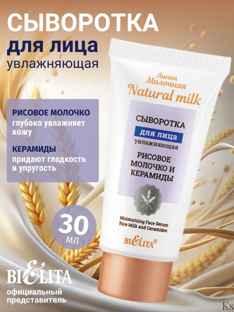 Bielita Сыворотка для лица увлажняющая «Рисовое молочко и керамиды»