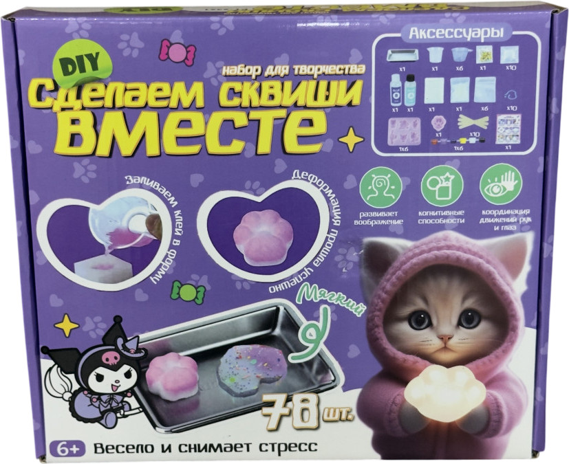 Набор для создания сквишей «Куроми»В данный момент этот товар отсутствует в продаже. Возможно, у нас найдется аналогичный или похожий товар здесь. Набор для создания сквишей — это увлекательный комплект для творчества, позволяющий создать мягкие антистресс-игрушки своими руками. Включает все необходимые материалы. Сквиши легко разукрашивать, они быстро высыхают и сохраняют эластичность. Развивает воображение, мелкую моторику и помогает снять напряжение. Подходит для детей и взрослых. |