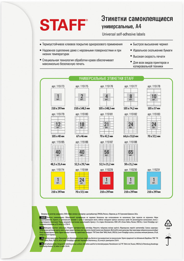 Staff Этикетки самоклеящиеся-20% +67
