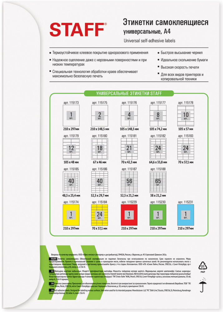 💳 Оплатить за товар можно при получении 🇰🇿 Есть бесплатная доставка по Казахстану от 1 дня 🎁 Копите бонусы с каждой покупки Универсальные самоклеящиеся этикетки позволят быстро и качественно подготовить адресные наклейки, регистрационные номера, аннотации при помощи лазерного или струйного принтера. |