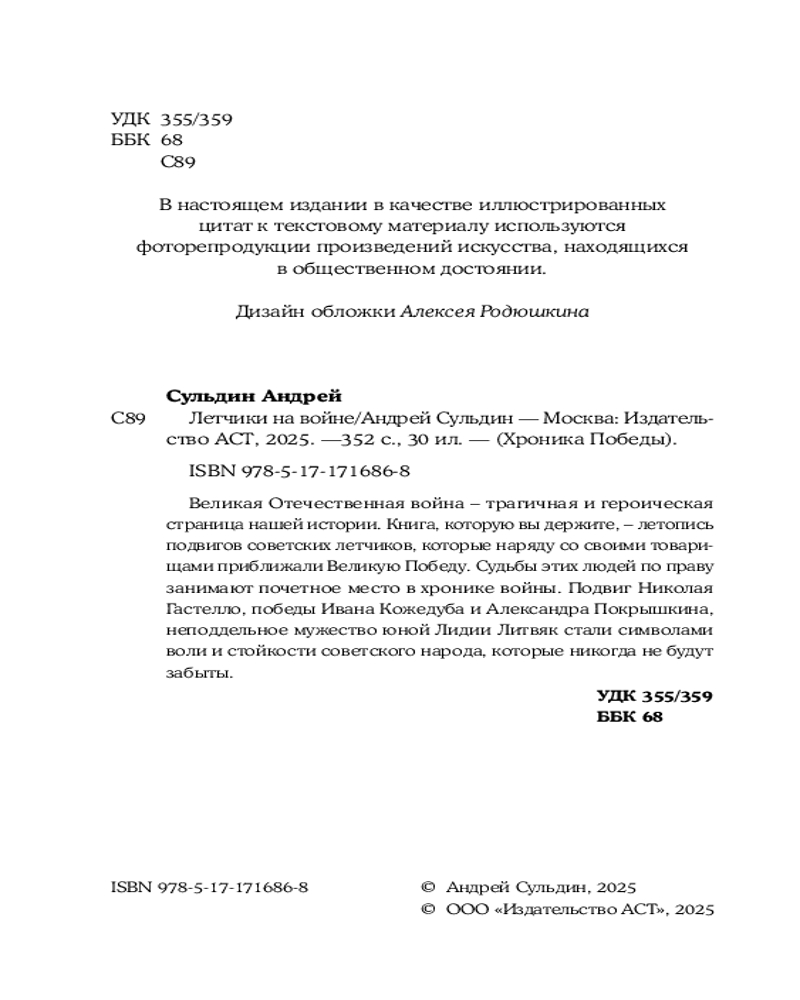 💳 Оплатить за товар можно при получении 🇰🇿 Есть бесплатная доставка по Казахстану от 1 дня 🎁 Копите бонусы с каждой покупки Серия: Хроника Победы Великая Отечественная война — трагичная и героическая страница нашей истории. Книга, которую вы держите, — летопись подвигов советских летчиков, которые наряду со своими товарищами приближали Великую Победу. Судьбы этих людей по праву занимают почетное место в хронике войны. Подвиг Николая Гастелло, победы Ивана Кожедуба и Александра Покрышкина, неподдельное мужество юной Лидии Литвяк стали символами воли и стойкости советского народа, которые никогда не будут забыты. |