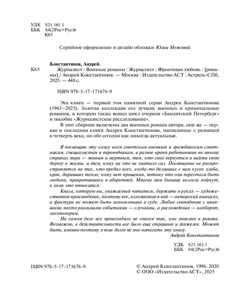 В этот сборник включены два военных романа автора, они же — первая и последняя книги Андрея Константинова, написанные с разницей в четверть века, но обе сегодня как никогда актуальные.