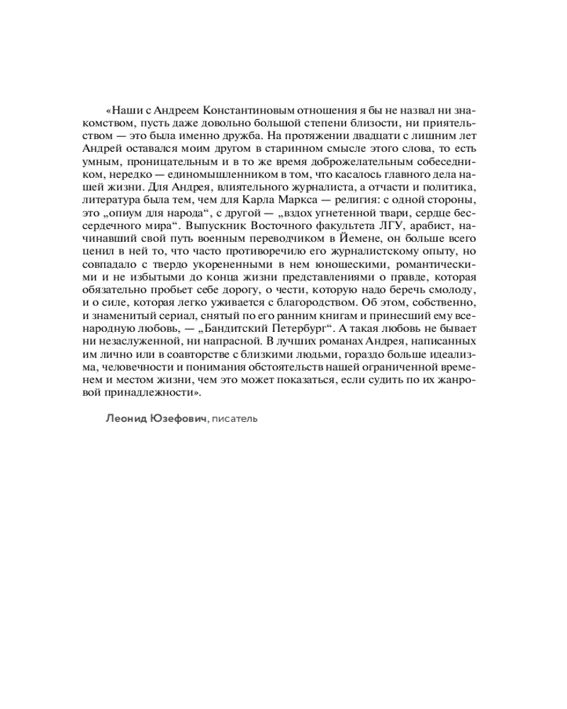 Серия: Главные книги Андрея Константинова Эта книга — первый том памятной серии Андрея Константинова (1963–2023). Золотая коллекция его лучших военных и криминальные романов, в которую также вошел цикл очерков «Бандитский Петербург» и пособие «Журналистское расследование».