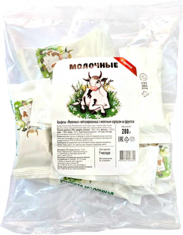 Диадар Конфеты неглазированные на фруктозе «Молочные»