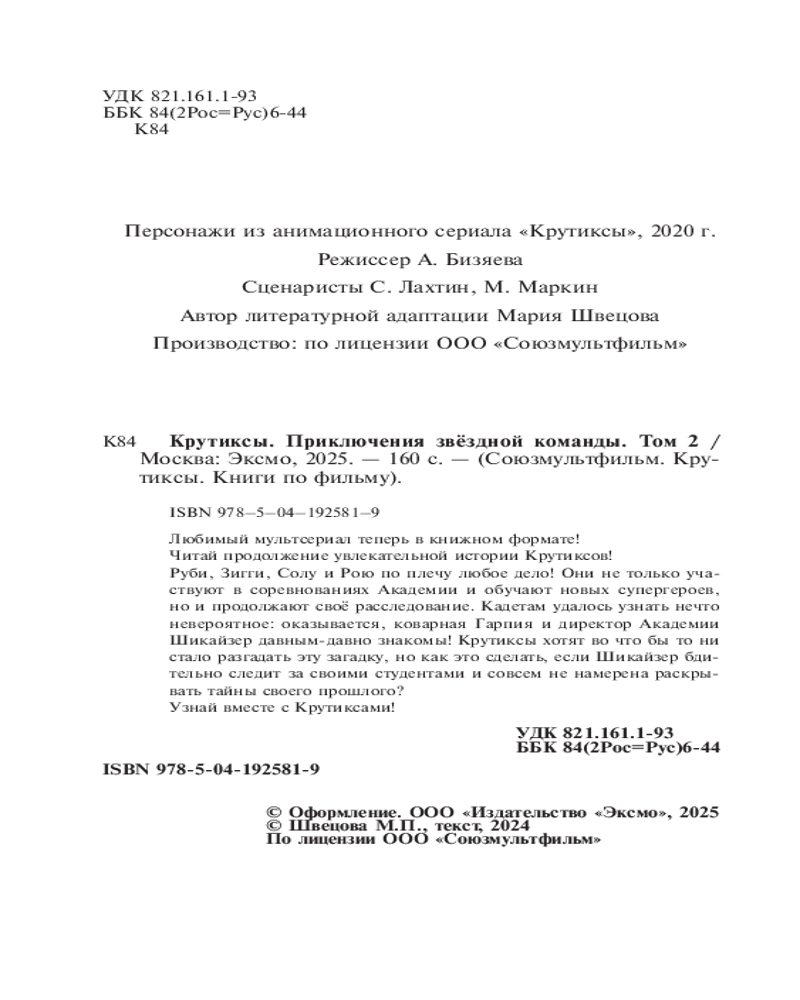 💳 Оплатить за товар можно при получении 🇰🇿 Есть бесплатная доставка по Казахстану 🎁 Копите бонусы с каждой покупки Серия: Союзмультфильм. Крутиксы. Книги по фильму Любимый мультсериал «Крутиксы» теперь в книжном формате! |