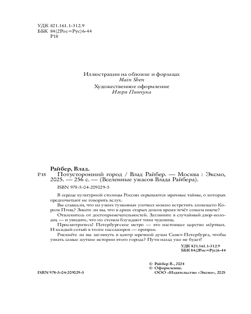 💳 Оплатить за товар можно при получении 🇰🇿 Есть бесплатная доставка по Казахстану от 1 дня 🎁 Копите бонусы с каждой покупки Серия: Вселенные ужасов Влада Райбера Новинка мастера страшных рассказов Влада Райбера! Сборник мистических историй «Потусторонний город» перенесет всех любителей хорроров в северную столицу, хранящую мрачные тайны. В разных районах города скрывается нечисть, которую не так-то просто победить. Роман придется по душе поклонникам «Зайчика», «Плюшевой головы» и «Летнего лагеря». |