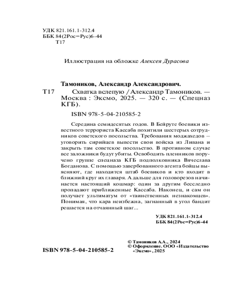 💳 Оплатить за товар можно при получении 🇰🇿 Есть бесплатная доставка по Казахстану от 1 дня 🎁 Копите бонусы с каждой покупки Серия: Спецназ КГБ (обложка) Роман о напряженной работе специалистов уникального подразделения КГБ. От мозгового штурма при подготовке секретной операции до реальной схватки с коварным противником в любой точке земного шара — путь, который по силам только мужественным и преданным своему делу профессионалам. |