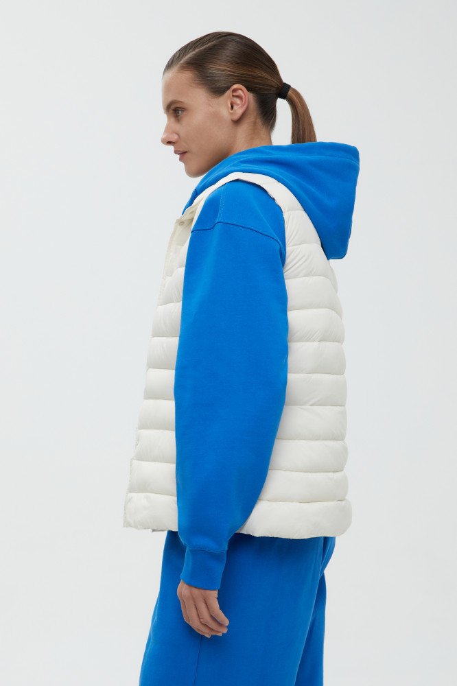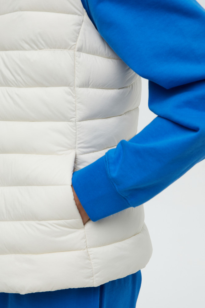 Легкий и комфортный утепленный жилет дополнит образ в прохладную погоду. Невесомый, теплый и экологически чистый искусственный утеплитель Downfill обладает высокими теплоизолирующими свойствами, отлично держит форму и восстанавливает первоначальный объем. Жилет идеально подойдет для активного отдыха на свежем воздухе или долгих прогулок по городу. Тонкая ткань приятна на ощупь, а благодаря специальной пропитке жилет обладает легкими водоотталкивающими свойствами. Практичные детали: укрепленные швы, воротник-стойка, надежная застежка на кнопки, вместительные, но незаметные карманы. К жилету прилагается удобный мешочек из основной ткани для комфортного хранения.
