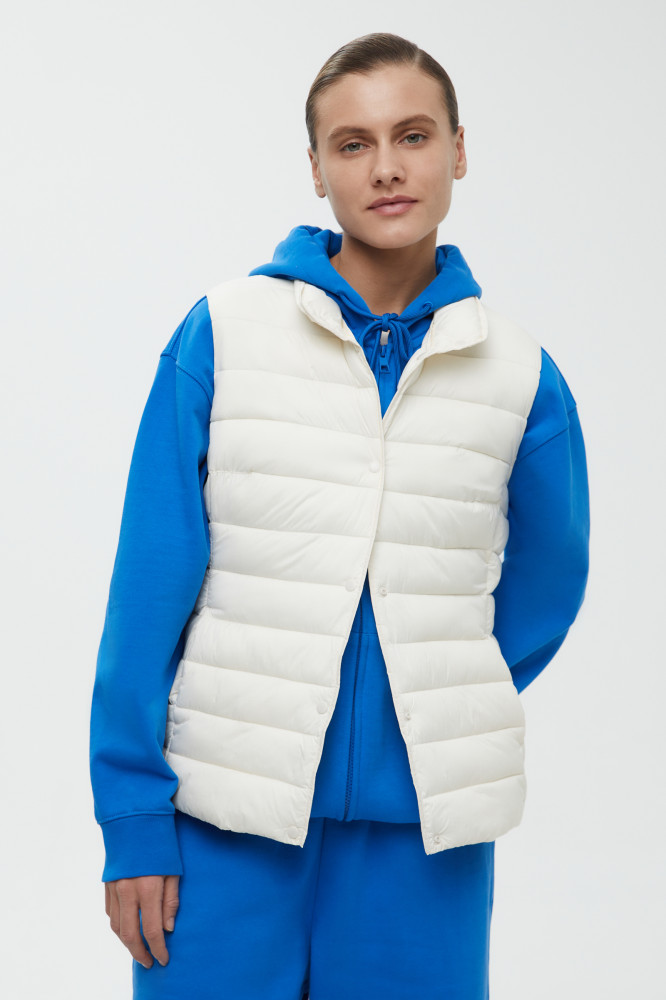 Легкий и комфортный утепленный жилет дополнит образ в прохладную погоду. Невесомый, теплый и экологически чистый искусственный утеплитель Downfill обладает высокими теплоизолирующими свойствами, отлично держит форму и восстанавливает первоначальный объем. Жилет идеально подойдет для активного отдыха на свежем воздухе или долгих прогулок по городу. Тонкая ткань приятна на ощупь, а благодаря специальной пропитке жилет обладает легкими водоотталкивающими свойствами. Практичные детали: укрепленные швы, воротник-стойка, надежная застежка на кнопки, вместительные, но незаметные карманы. К жилету прилагается удобный мешочек из основной ткани для комфортного хранения.