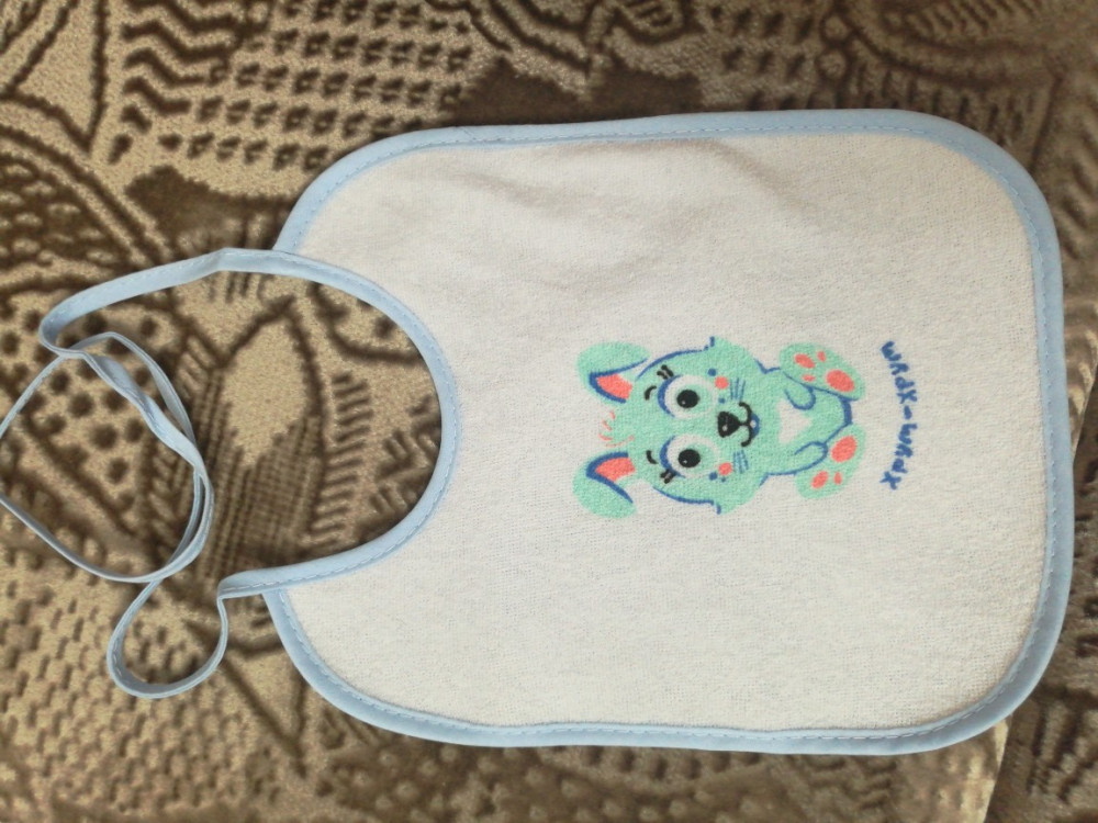 Хорошие слюнявчики. Запаха нет. Завязки длинные. Вообще, они относительно большие.