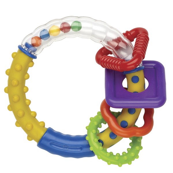 Погремушка просто класс. Нашей малышке понравилась сразу. И прорезыватель имеется для зубов. Да и, вообще, не сильно шумит. Замечательная погремушка, рекомендуем!