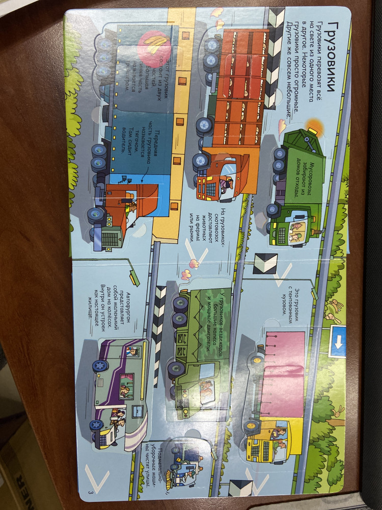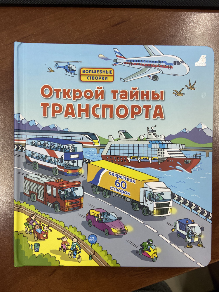 Познавательная книжка !!! Развороты про поезда, технику для фермы, стройки, самолет, грузовики, гоночные машины, лайнер и машины спасатели! Много секретных створок! Это уже 3 книга из этой серии! И все у ребенка в фаворитах!!! На подарок вообще прекрасная вещь!!! 5+++
