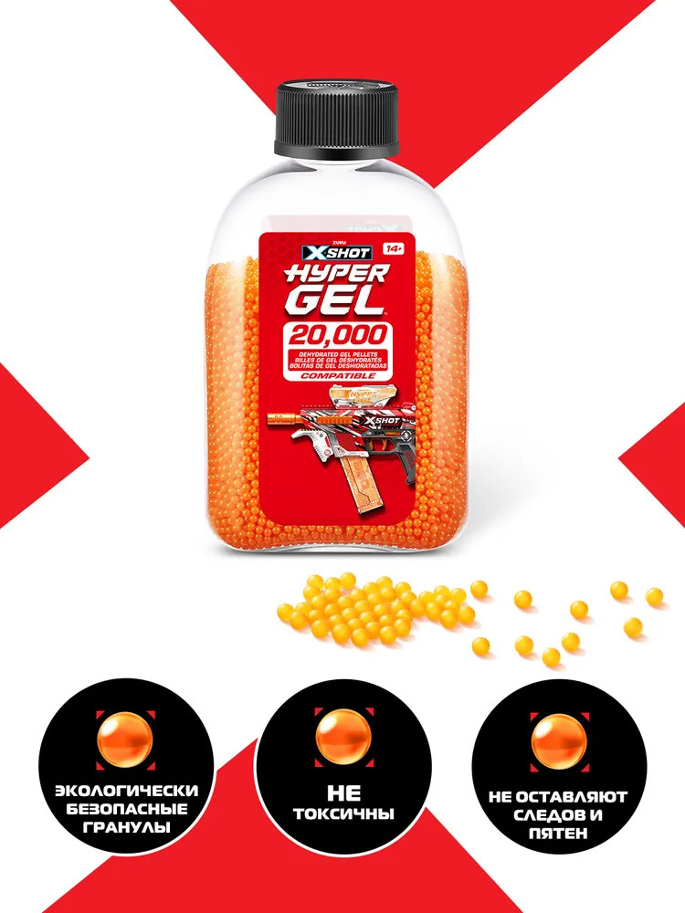 💳 Оплатить за товар можно при получении 🇰🇿 Есть бесплатная доставка по Казахстану 🎁 Копите бонусы с каждой покупки Никогда не пропустите момент с этим удобным набором из 20000 гранул Hyper Gel! Гранулы X-shot Hyper Gel нетоксичны, безопасны для окружающей среды и не оставляют пятен. Просто добавьте воды, чтобы подготовить их к поединку, и начните веселье. Набор упакован в многократно закрывающийся контейнер для удобного хранения. |