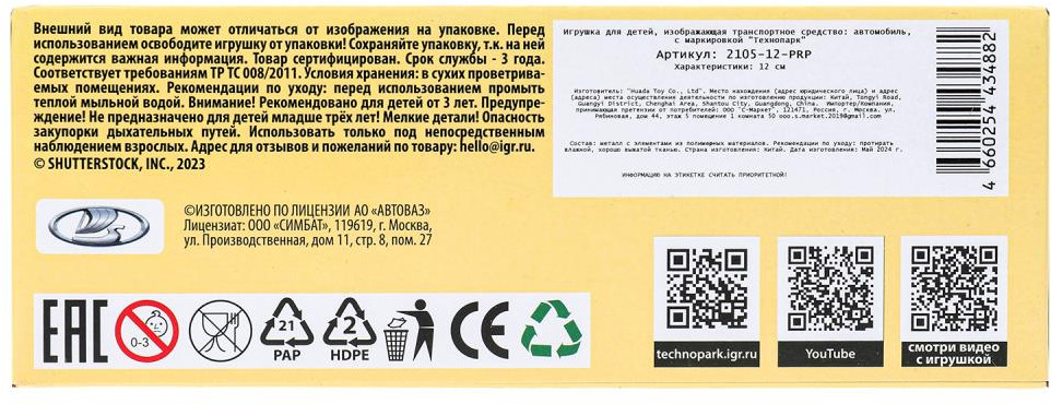Технопарк Металлическая модель «ВАЗ-2105 «Жигули»