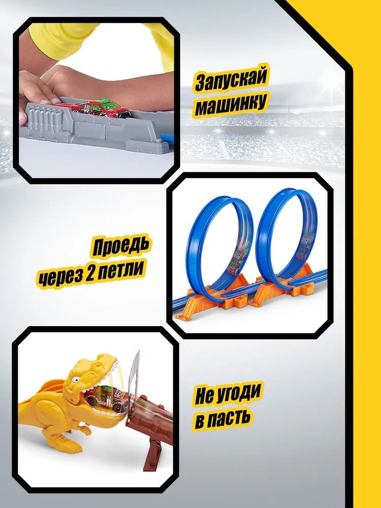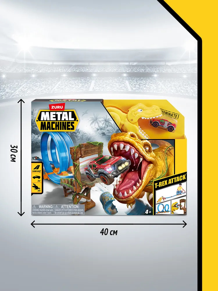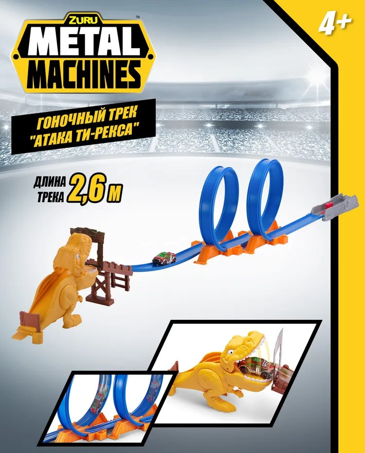 Zuru Трек гоночный с аксессуарами «Атака Ти-Рекса»В данный момент этот товар отсутствует в продаже. Возможно, у нас найдется аналогичный или похожий товар здесь. Серия: Metal Machines Игровой набор для тех, кто не боится опасности! Пройдите через мёртвые петли и не попадитесь в пасть к Ти-Рексу, отправляясь в путь по треку Metal Machines «Атака Ти-Рекса». Это захватывающая интерактивная игра, которая подарит много радости и веселья детям. В комплекте с этим набором вы найдёте автотрек длиной 2,6 метра с двумя петлями и трамплином, который ведёт прямо к Ти-Рексу. Трек полон различных препятствий и вызовов для вашей машинки. Не упустите возможность погрузиться в захватывающий мир гонок и приключений с игровым детским набором Metal Machines «Атака Ти-Рекса»! |