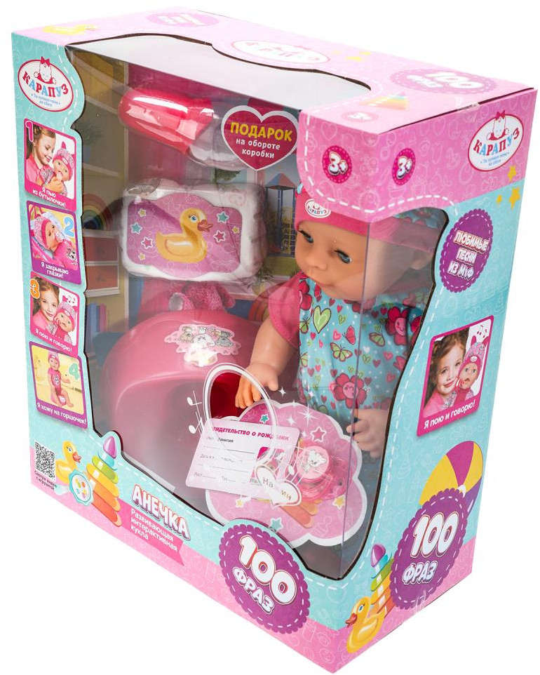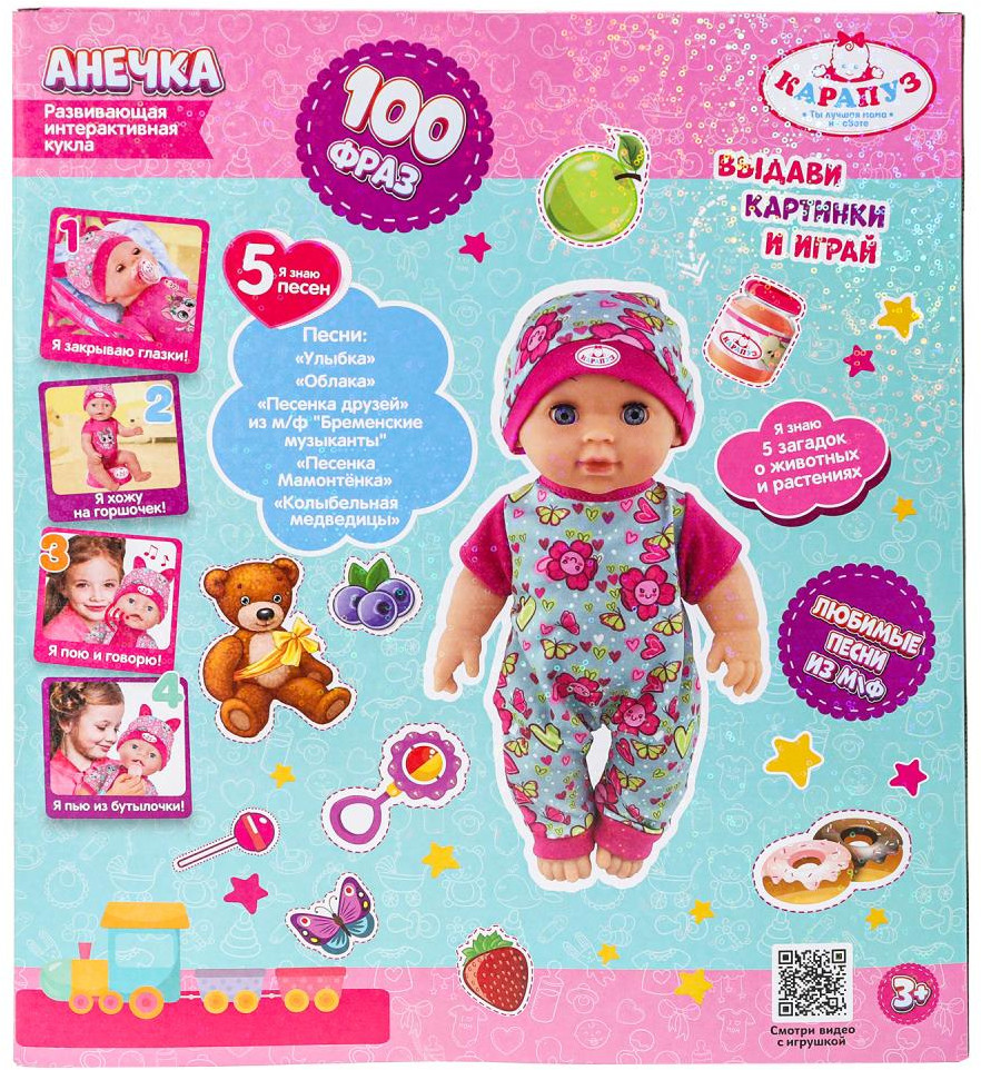💳 Оплатить за товар можно при получении 🇰🇿 Есть бесплатная доставка по Казахстану от 1 дня 🎁 Копите бонусы с каждой покупки Интерактивный пупс «Анечка» ТМ «Карапуз» станет замечательным подарком для вашей принцессы: |