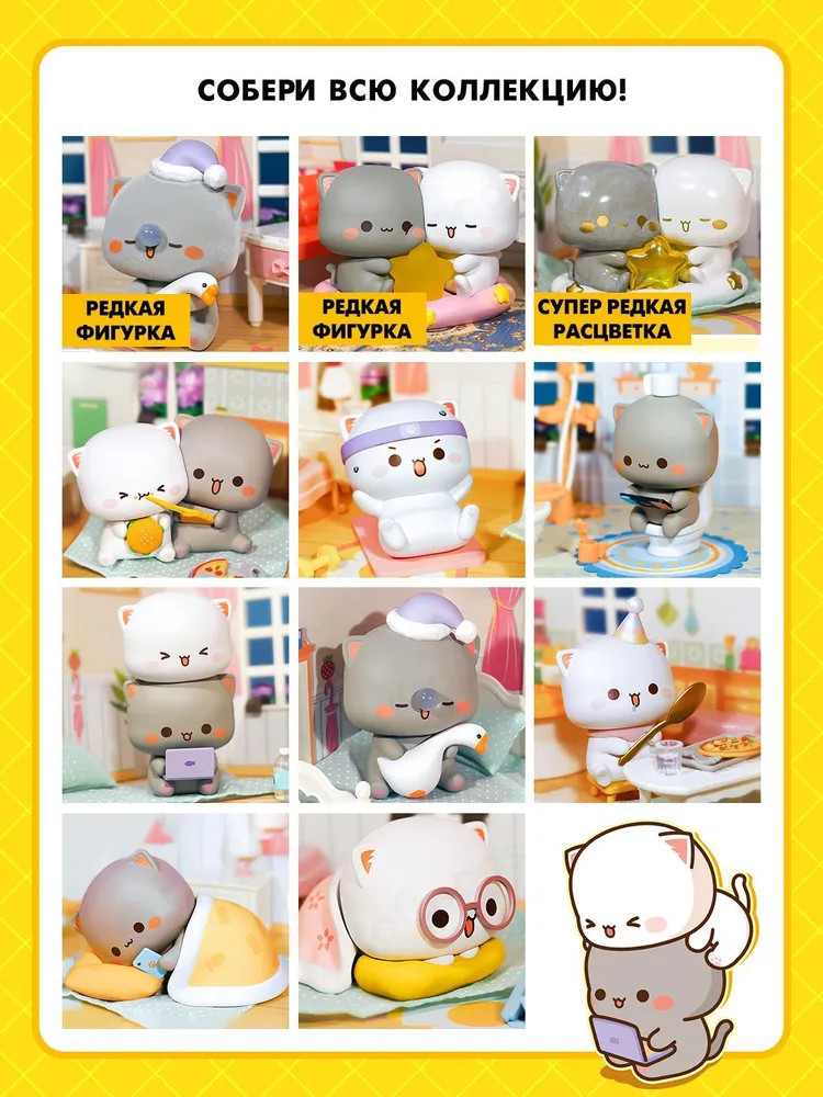 52Toys Фигурка-сюрприз «Mitao Cat. Season 4»В данный момент этот товар отсутствует в продаже. Возможно, у нас найдется аналогичный или похожий товар здесь. Mitao cat – кошечки, которые полюбились всему интернет-сообществу своими забавными сюжетами. И теперь милые котики занимаются своими любимыми делами: читают, играют в игры, нежатся в кровати, а самое главное – делают это вместе. Всего в коллекции 8 основных и 2 редкие фигурки. |