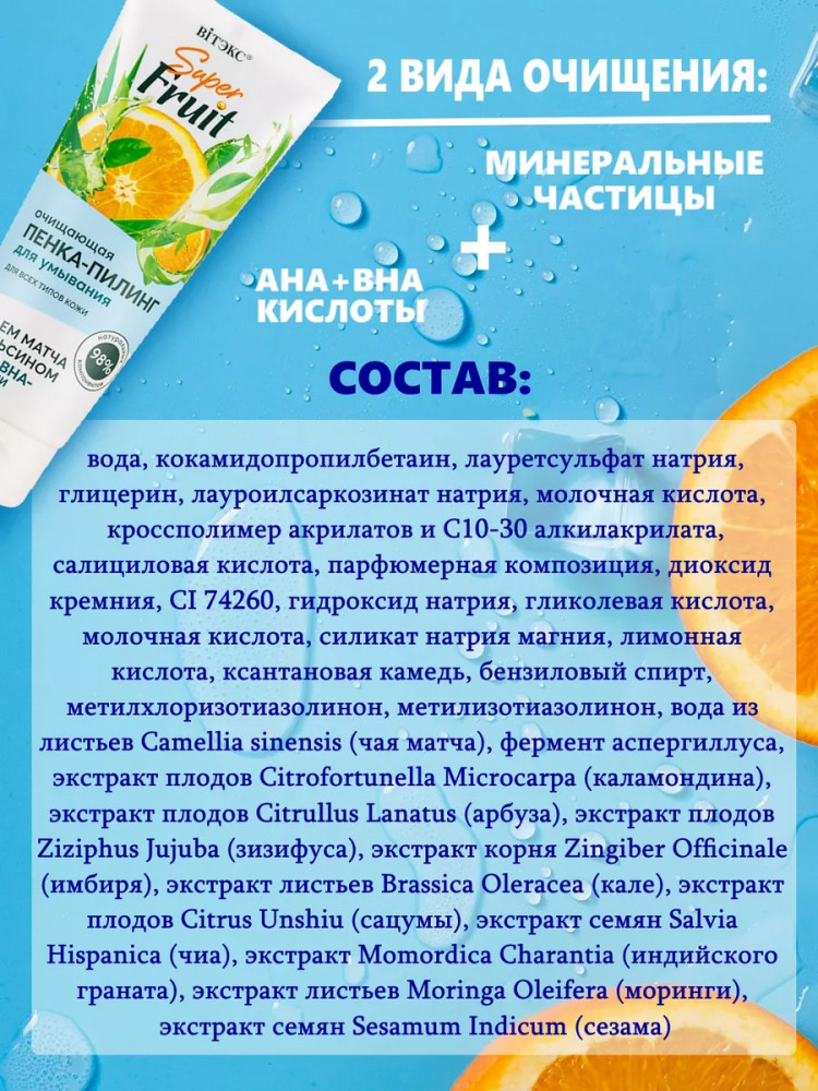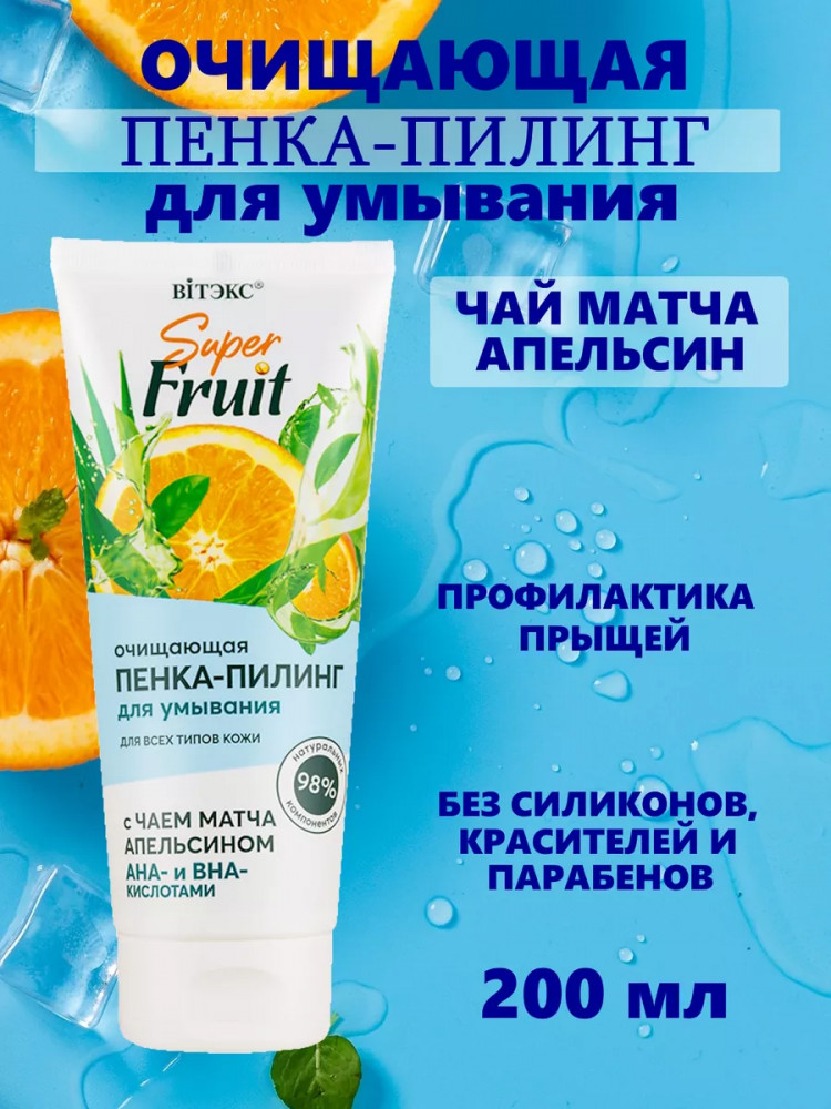 Вiтэкс Пенка-пилинг для умывания с чаем матча, апельсином, АНА и ВНА кислотами