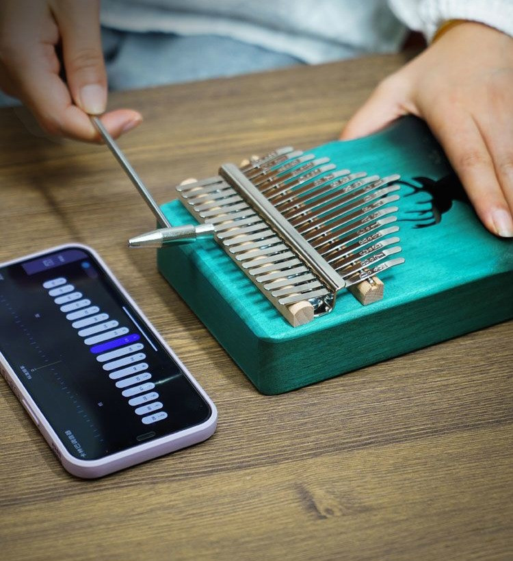 У калимбы 17 нот, расположенных ёлочкой. Каждый язычок пронумерован в соответствии с порядковым номером нот (1C — до, 2D — ре, 3E — ми, 4F — фа, 5G — соль, 6A — ля, 7B — си). Звучание калимбы мелодичное, переливчатое. Оно напоминает нечто среднее между звоном колокольчиков и звуком фортепиано. Маленькие инструменты негромкие и звонкие, большие — более гулкие, басовитые. Калимба настроена в тональности до-мажор таким образом, что любое бренчание по нотам будет приятно на слух. Тональность изменяется с помощью специального молоточка.