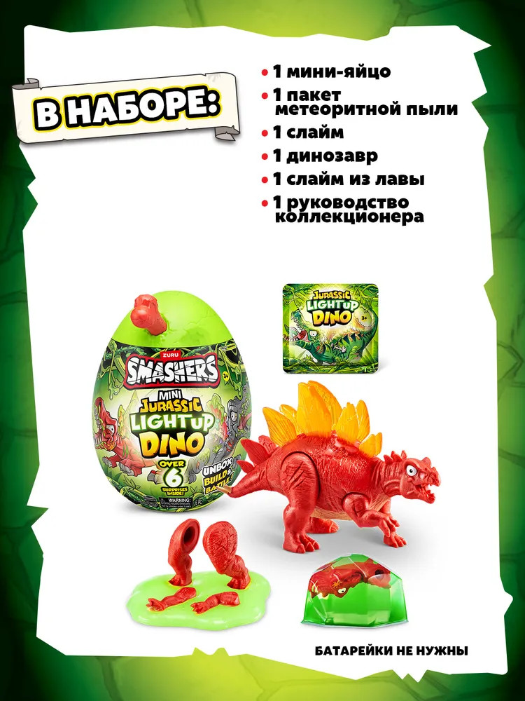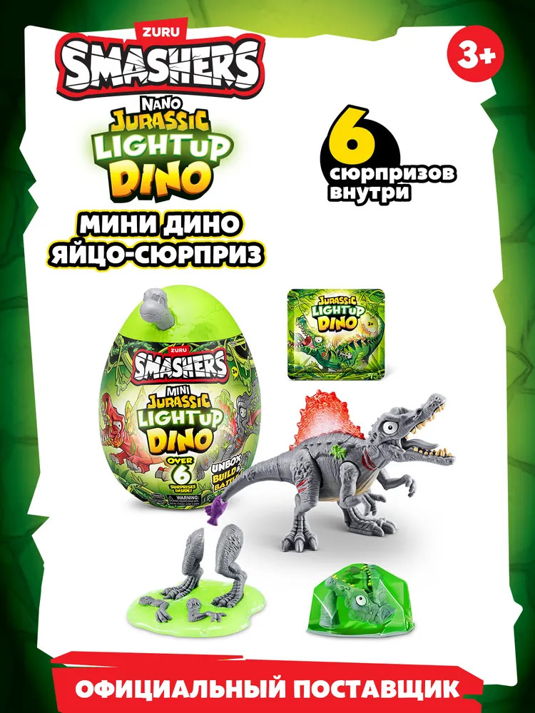 Zuru Набор-сюрприз с аксессуарами «Дино Яйцо. Smashers Mini Jurassic Light Up»-20% +278