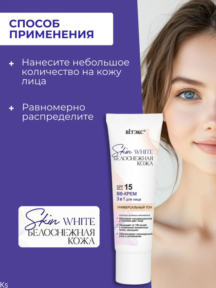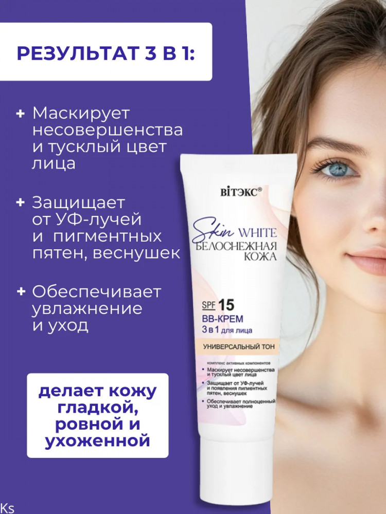 Вiтэкс ВВ крем для лица 3 в 1 SPF 15, оттенок Универсальный