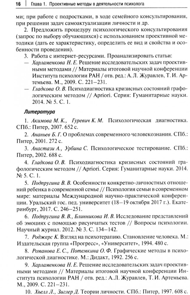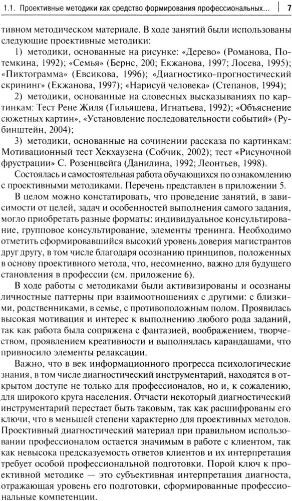 Проективный метод в практической деятельности психолога. Учебно-методическое пособиеВиктория Викторовна Подпругина В данный момент этот товар отсутствует в продаже. Возможно, у нас найдется аналогичный или похожий товар здесь. В учебно-методическом пособии представлены проективные методики и возможность их использования в практической деятельности профессиональных психологов. Предпринята попытка отразить опыт формирования профессиональных компетенций на практических занятиях по дисциплинам «Психолого-педагогическое сопровождение образования», «Психологическая служба в образовании», «Основы психологического консультирования», «Супервизия практической деятельности психолога» уровней бакалавриата и магистратуры посредством ознакомления с диагностическим инструментарием проективных методик. Рассмотрены проективные технологии в деятельности практического психолога, психолога-консультанта, обоснована их позитивная роль в построении и ведении беседы с участником исследования. Даны квалификация проективных технологий, анализ их использования в практической деятельности профессионального психолога. Предназначено для практикующих психологов, а также может быть использовано при формировании профессиональных компетенций уровней бакалавриата и магистратуры по направлениям подготовки «Психолог», «Педагог-психолог», «Психолог-консультант». |