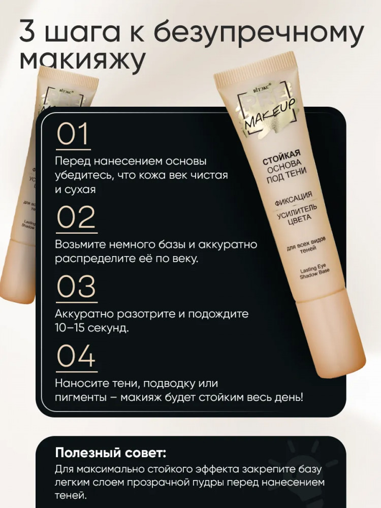 Вiтэкс Основа под тени стойкая «Усилитель цвета»-25% +36 усиливает цвет мгновенно впитывается неоднородная консистенция