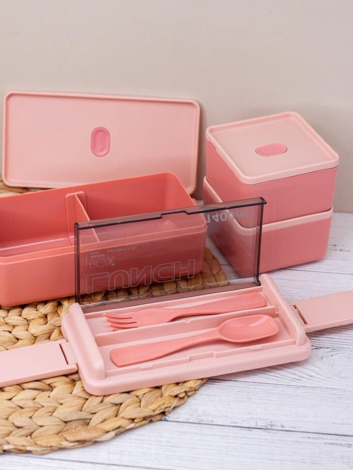 Toki Ланчбокс с ложкой и вилкой «Big life»