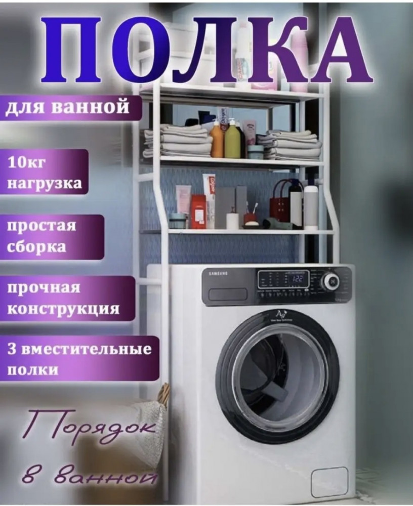 Стеллаж имеет три вместительные полки, позволяя собрать все вещи в одном месте. Все, что раньше стояло на стиральной машинке, теперь аккуратно разместится на полках. Расстояние между полками позволяет хранить как гигиенические принадлежности, так и хозяйственный инвентарь.